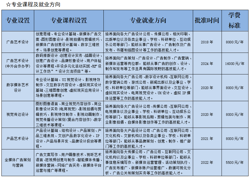 广告艺术设计(中外合作办学)专业致力于培养能参与国际竞争的广告专业人才。课程体系融合国际广告理念和实践技术,由中外教师共同授课,学生有机会参与国际交流项目,毕业后可在广告及相关领域工作,也可继续深造或留学。